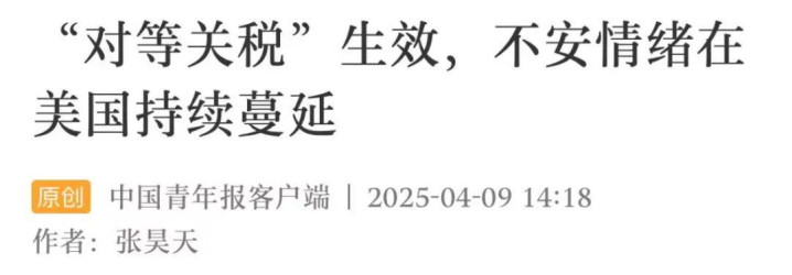 记者注意到,美国政府所谓“对等关税”已于当地时间4月9日凌晨正式生效,已经运往美国的外国商品暂时免受加征关税影响,但对全球贸易摩擦加剧和经济形势恶化的预期,还是让美国企业和消费者的心态发生了显著转变。