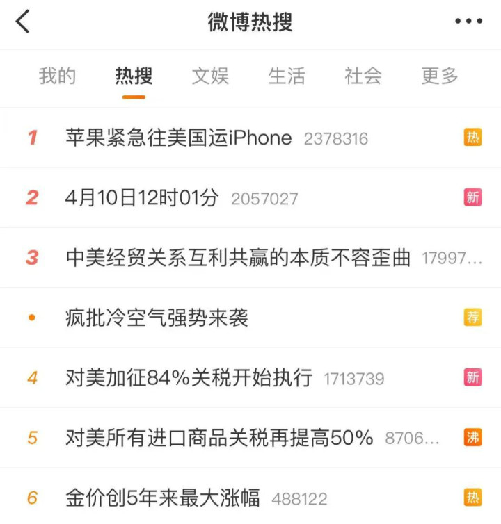 同日,多个涉关税话题刷屏热搜——